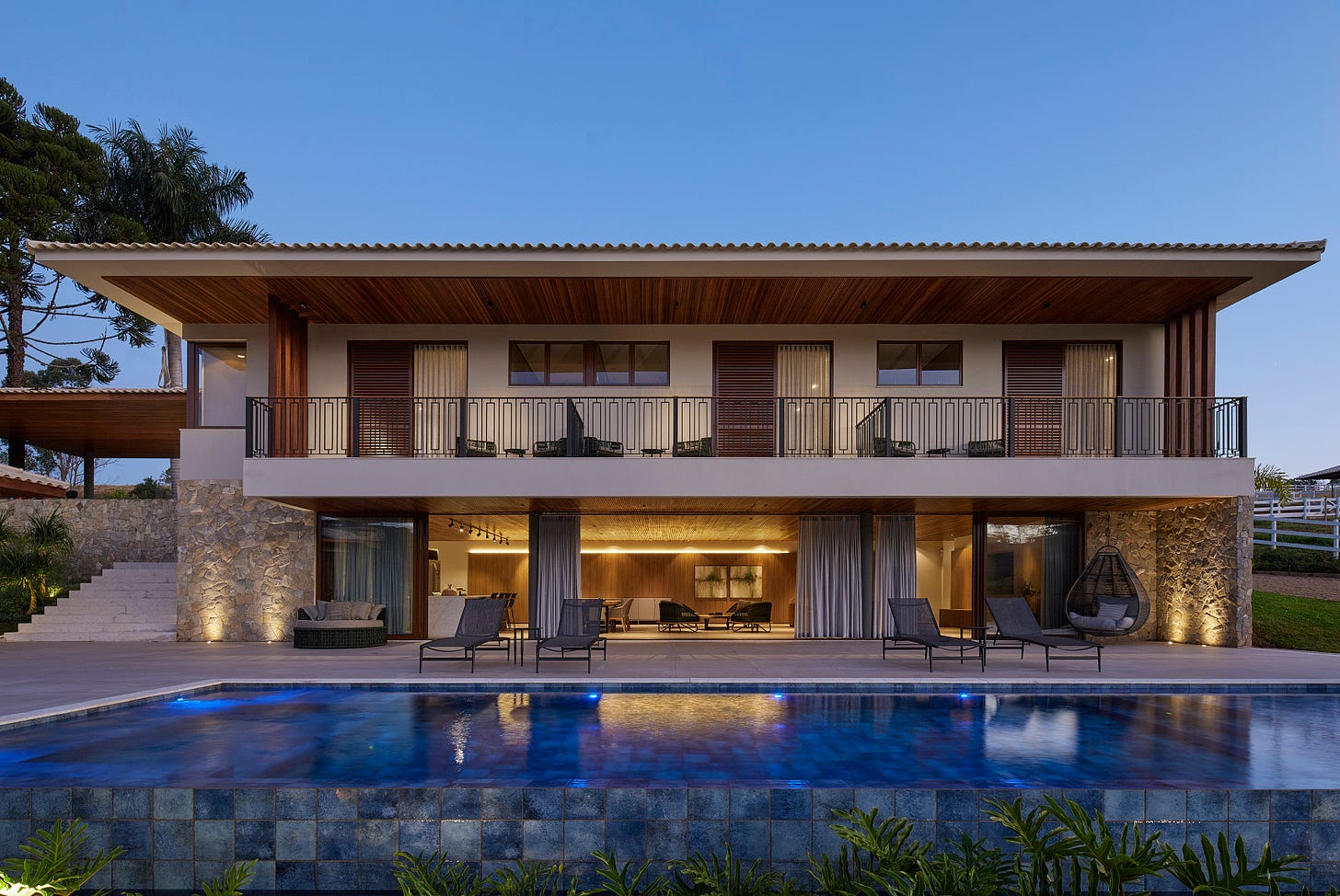Uma residência no campo projetada com a essência desse tipo de casa, com atenção máxima ao lazer e a bem receber. O projeto assinado pela arquiteta Fernanda Villefort une funcionalidade e praticidade, mas não abre mão dos detalhes. Como é característico do trabalho do escritório, ele é marcado pela atemporalidade, que aqui se apresenta em uma proposta contemporânea.