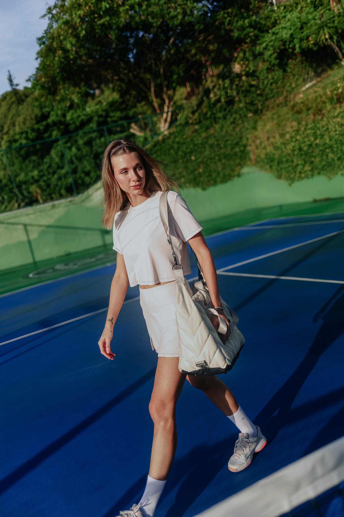 Entre os destaques, vestidos, saias e tops surgem com caimento fluido e tecidos leves, que proporcionam conforto e liberdade durante o uso. Os detalhes funcionais, como bolsos estratégicos e acabamentos pensados para a prática esportiva, reforçam o equilíbrio entre estética e performance, enquanto a proposta monocromática convida à composição de looks completos, ampliando as possibilidades de styling.