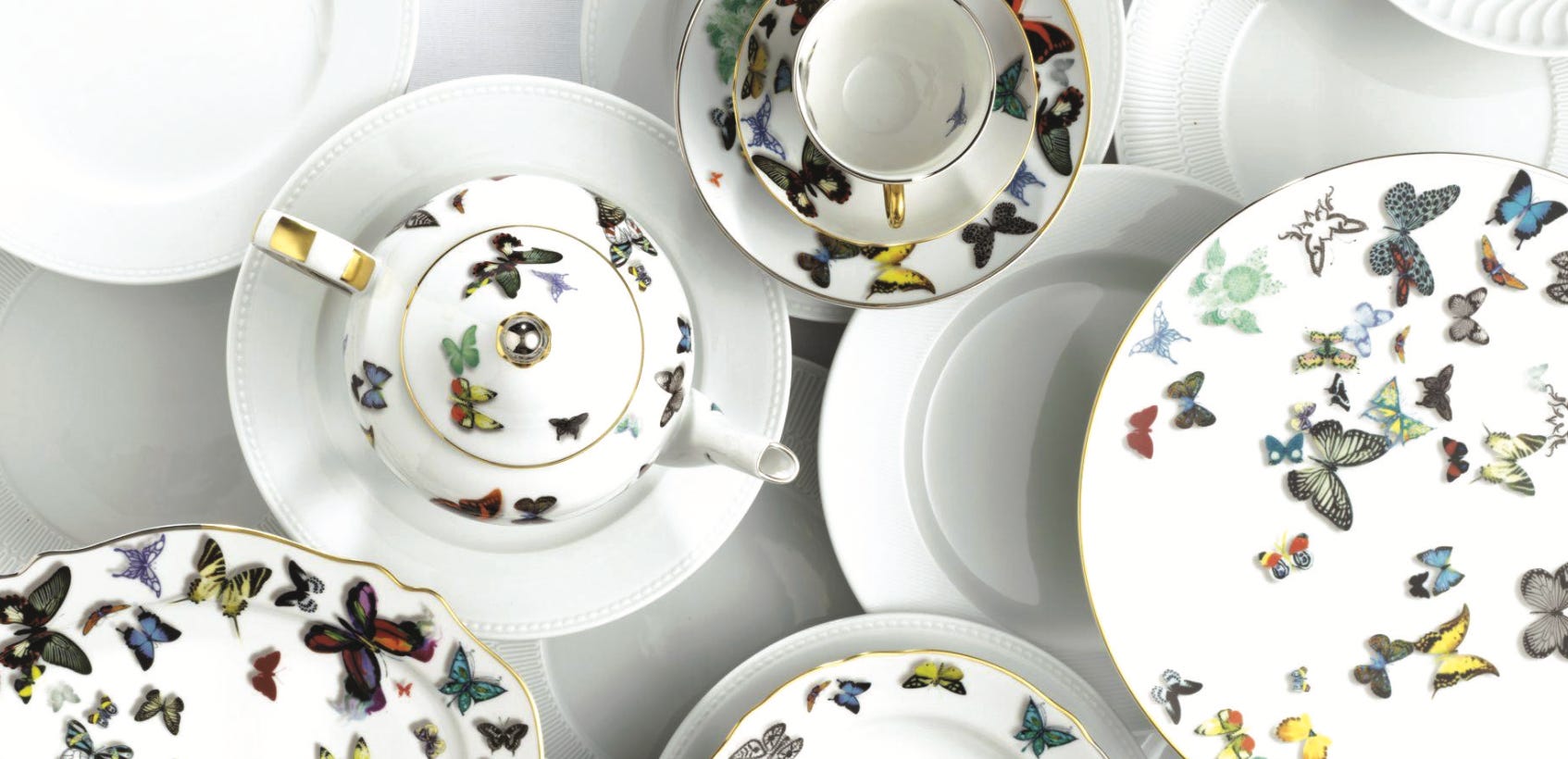 Nas coleções em colaboração com a portuguesa Vista Alegre, mergulhamos em um cenário inédito em que renomados estilistas, como Christian Lacroix e Oscar De La Renta deixam suas marcas não apenas nas passarelas, mas também nas coleções de aparelhos de jantar e peças decorativas mais deslumbrantes.