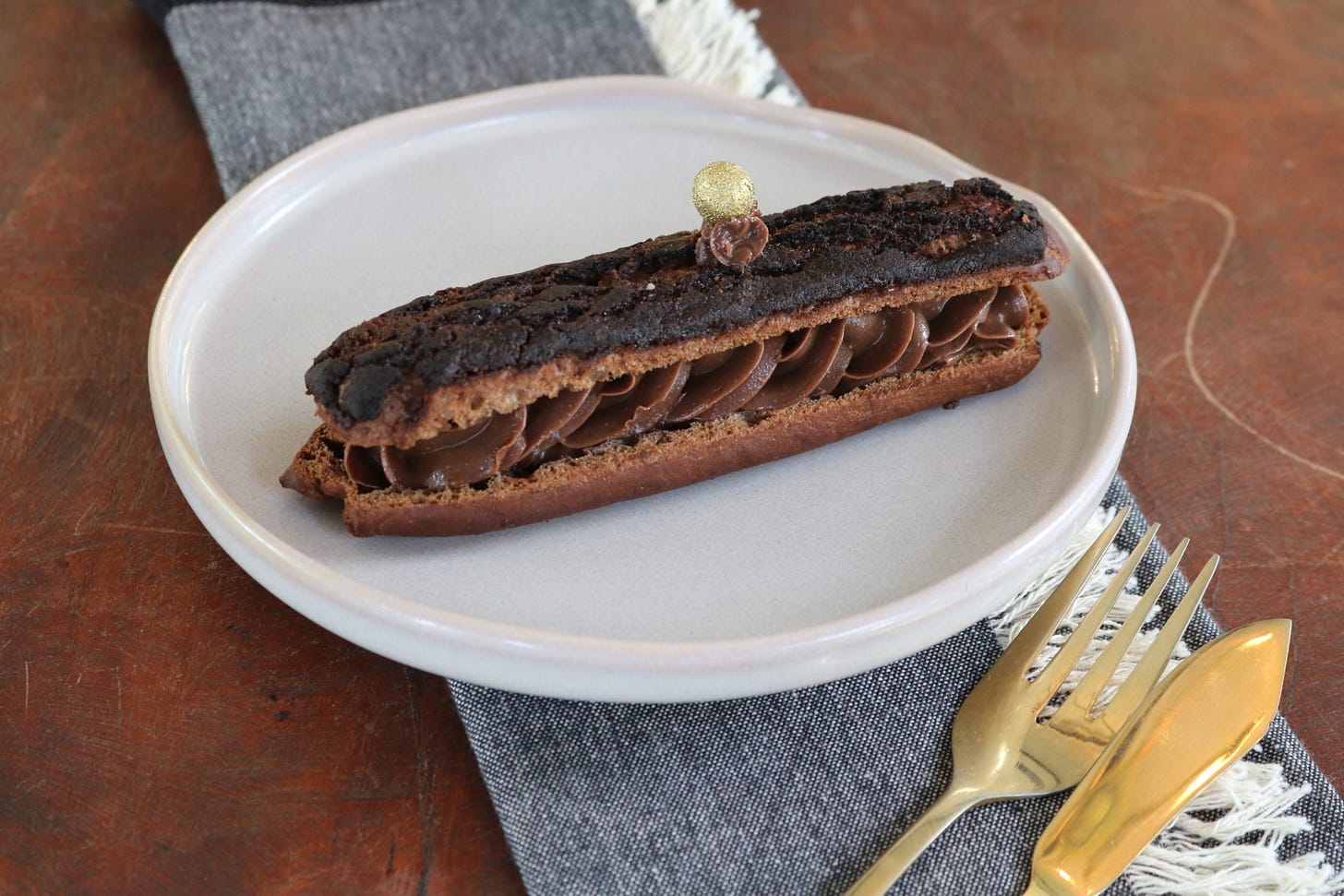Doce francês típico de “patê à choux”, massa feita com manteiga, água, farinha e ovos, recheada de muito chocolate. Na Boulangerie Carioca, pâtisserie inspirada no estilo francês, a Éclair está disponível por R$ 17,00.