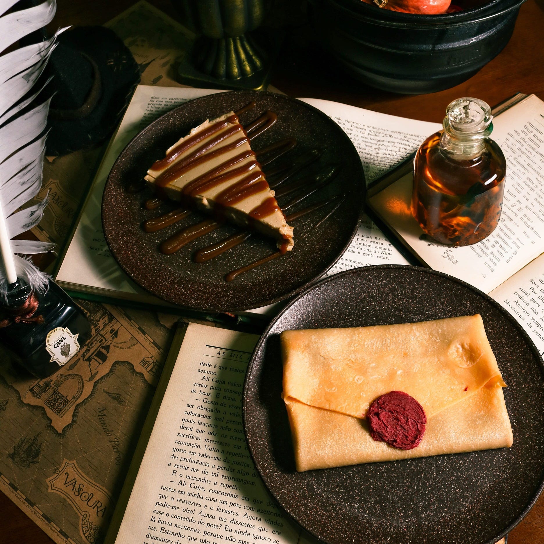 Para aqueles bruxos e bruxas ansiosos pela carta de aceitação na escola de feitiçaria, a solução deliciosa e “chocolatuda” está no Vassoura Quebrada, rede de restaurantes pioneira na temática de magia e bruxaria. Por lá, a sobremesa é uma apetitosa panqueca enfeitiçada, com um recheio de ganache de chocolate meio amargo e frutas vermelhas, no valor de R$ 24,00.