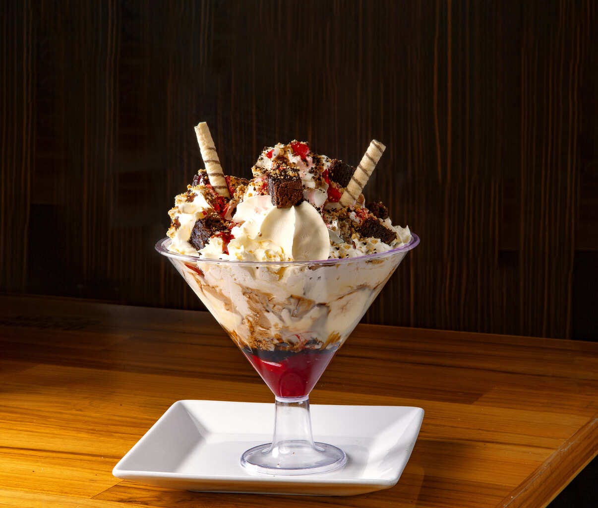 Chocolate mais que suficiente para dividir com a turma, o James Brownie é o carro-chefe entre os doces do Johnny Rockets, rede californiana de hamburguerias ambientadas na década de 1950. Taça de 1 litro, servida com sorvetes de chocolate, morango ou creme, a sobremesa de R$ 75,90 conta ainda com brownie de chocolate, chantilly, granulado de amendoim e cereja.