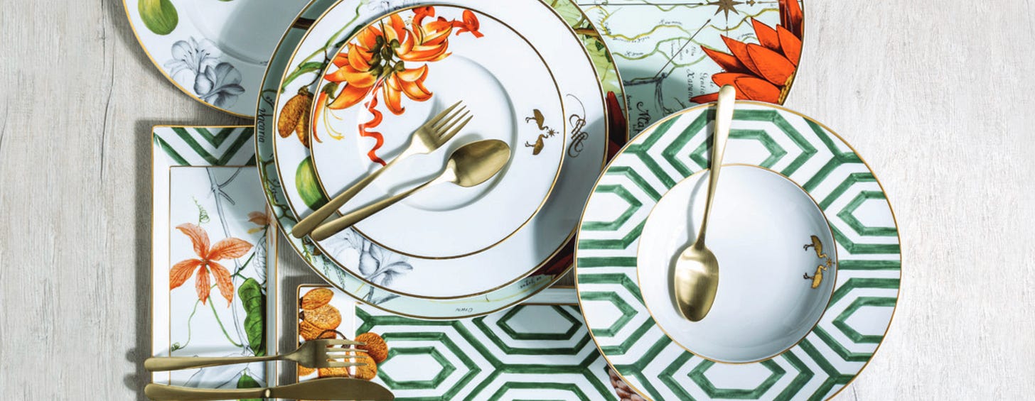 Para uma mesa clássica, aposte em uma estampa chave do seu aparelho de jantar favorito e combine tons e ornamentos que orquestrem com esse elemento principal.