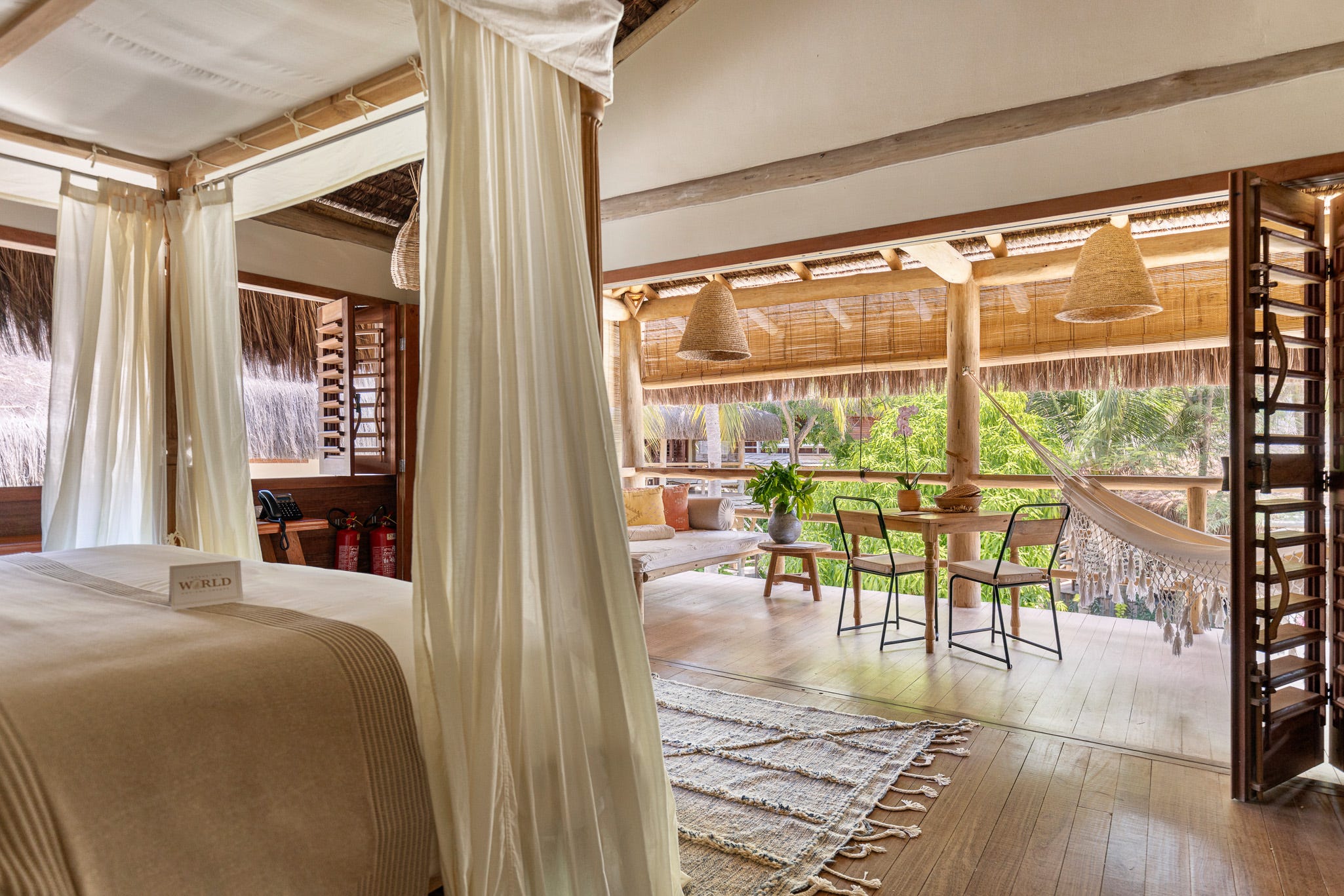 Outra opção para desfrutar o destino é o Filha da Lua Eco Lodge. Aberto em 2020, é um santuário ecológico na Praia das Minas, mais perto de toda a badalação de Pipa. O hotel boutique dispõe de apenas 17 suítes espalhadas em 9 bangalôs que parecem flutuar sobre o solo – um recurso arquitetônico que minimiza o impacto ambiental e integra o hotel à natureza ao redor. Para relaxar nos feriados, o spa em colaboração com a marca BioEssência tem tratamentos faciais e corporais Ayurveda e de aromaterapia para as rotinas de autocuidado. O Eco Lodge ainda é um dos seis únicos do mundo a adotar uma alimentação inteiramente sem glúten, presente em todas as refeições.