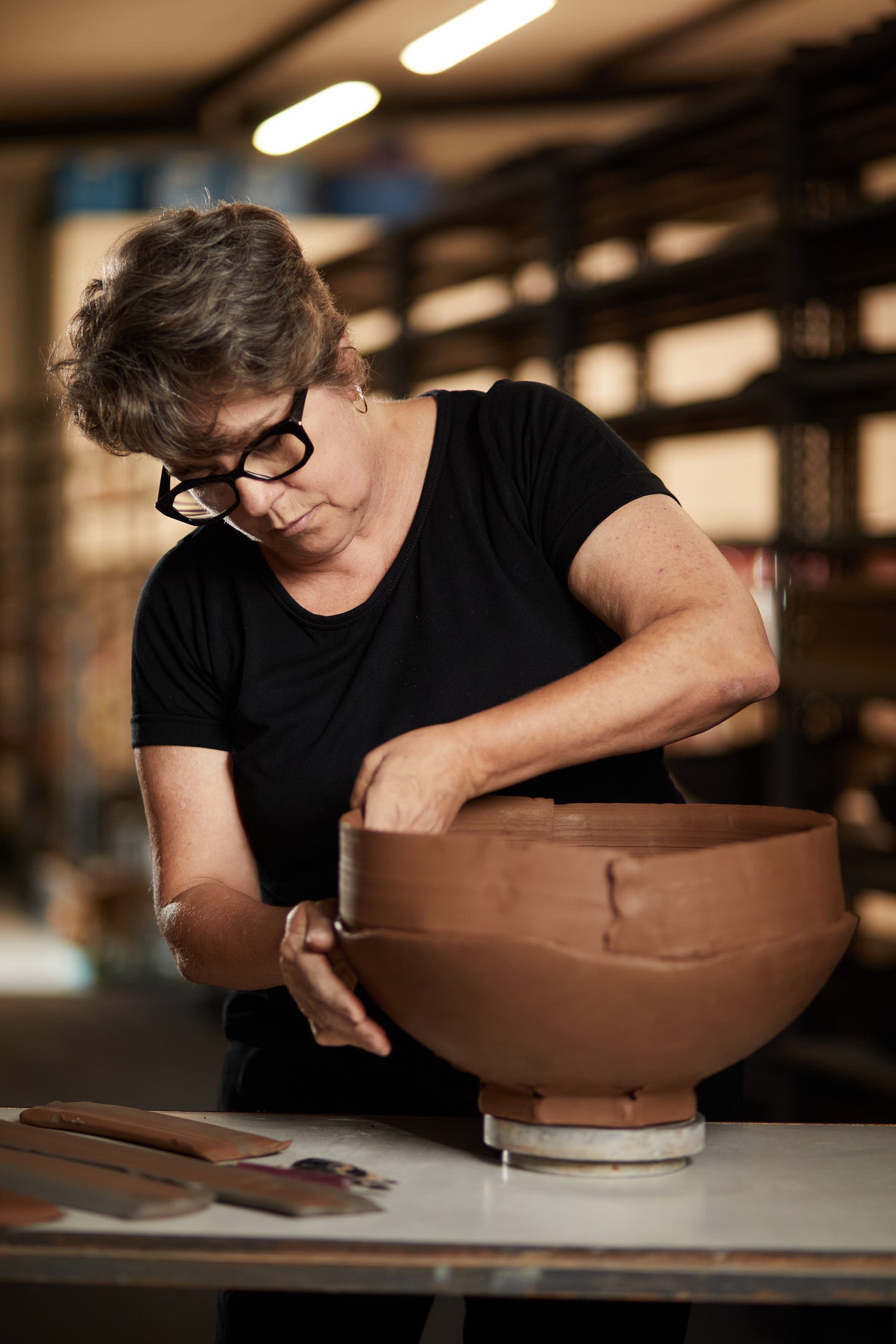 Formada em Design de Ambientes e Paisagismo pela UEMG, Flávia encontrou a cerâmica durante a graduação e desde então transformou-a em uma paixão criativa, transversal à sua vida e à de sua família. Ao longo de mais de 20 anos, ela realizou cursos com ceramistas como Erli Fantini, Nicia Braga e Silvia Barrios, participou de exposições individuais e coletivas e ministrou cursos — consolidando-se como referência em um fazer ceramista que valoriza saberes tradicionais e reinventos contemporâneos.