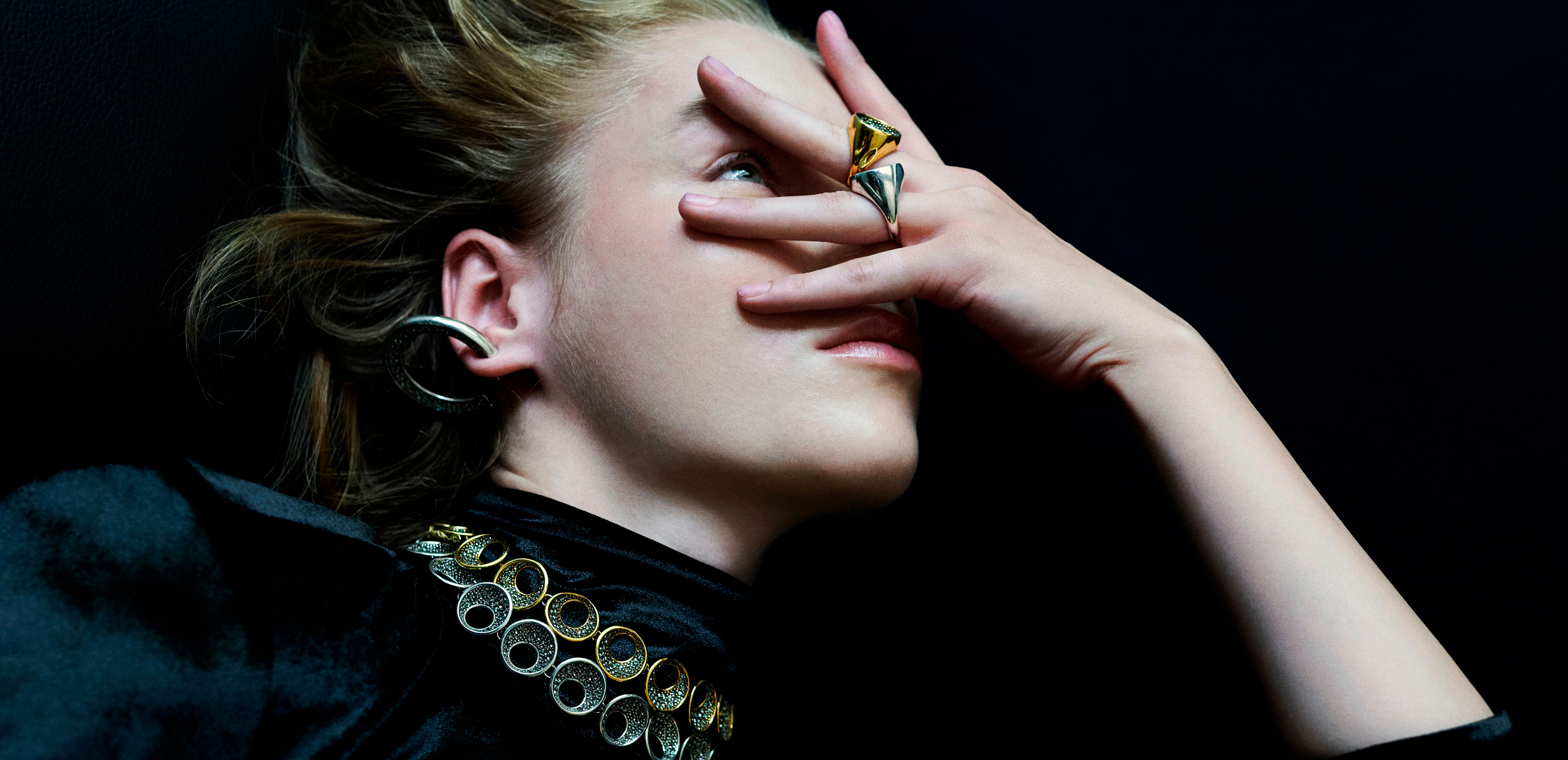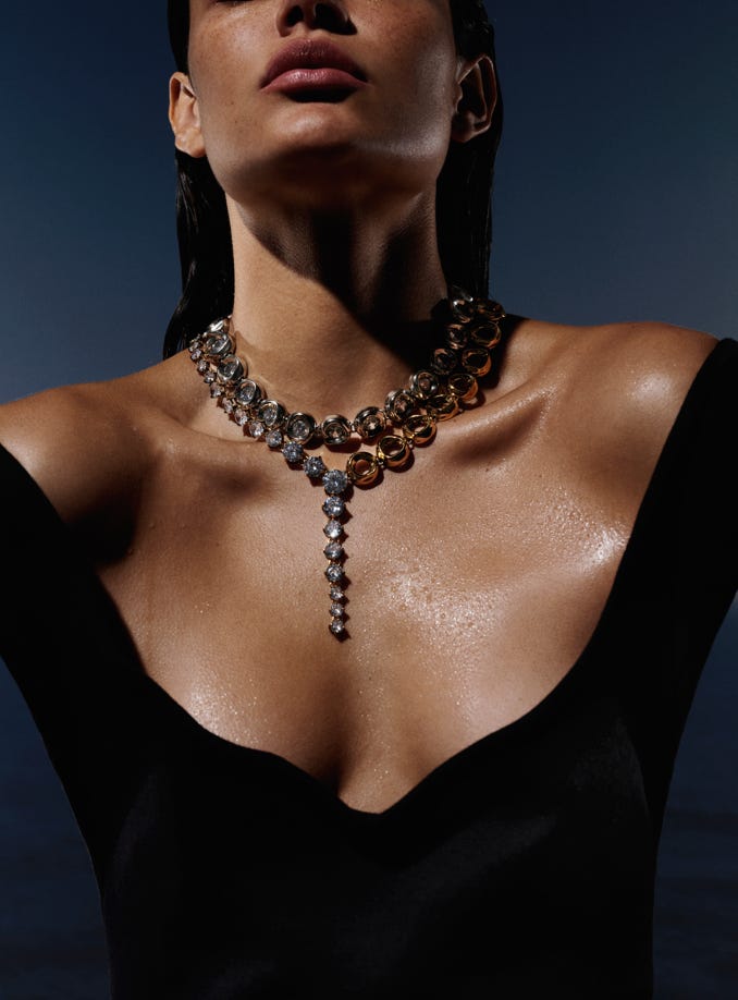 Mesmo em uma produção maximalista, é importante atentar-se à volumetria e harmonia nos acessórios. O equilíbrio dos tamanhos e formatos no momento de montar a composição é essencial e requer muita atenção. Para uma combinação fluida, invista em acessórios máxi, como colares e ear cuffs, acompanhados de anéis, brincos e pulseiras mais enxutos. Juntos, eles farão seu look funcionar com fluidez e proporção.