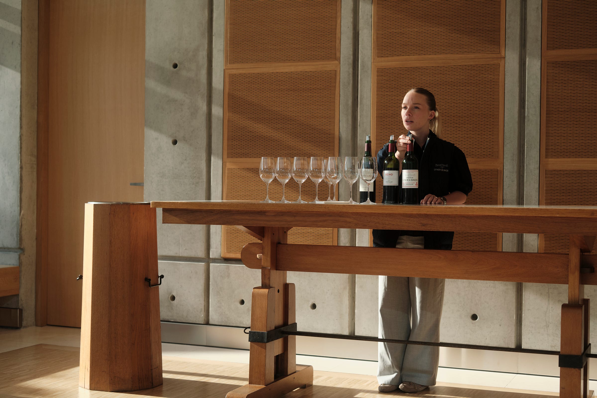 A poucos quilômetros, o Château Lynch-Bages abre uma janela para dentro: a adega nova, de linhas claras, foi desenhada para gravidade e vinificação por parcela — cada talhão vira um “minivinho” na sua própria cuba; no fim, o enólogo prova tudo e mistura o que faz mais sentido. Isso dá controle e nuance: você espera vinhos clássicos de Pauillac, com Cabernet Sauvignon dominante, só que bem mais nítidos. O projeto, assinado pela PEI Architects, aparece entre as entradas do Landezine International Landscape Award de 2025 — arquitetura que aproxima o visitante do processo, com esculturas poderosas decorando os espaços — mas sem roubar a cena do vinho.