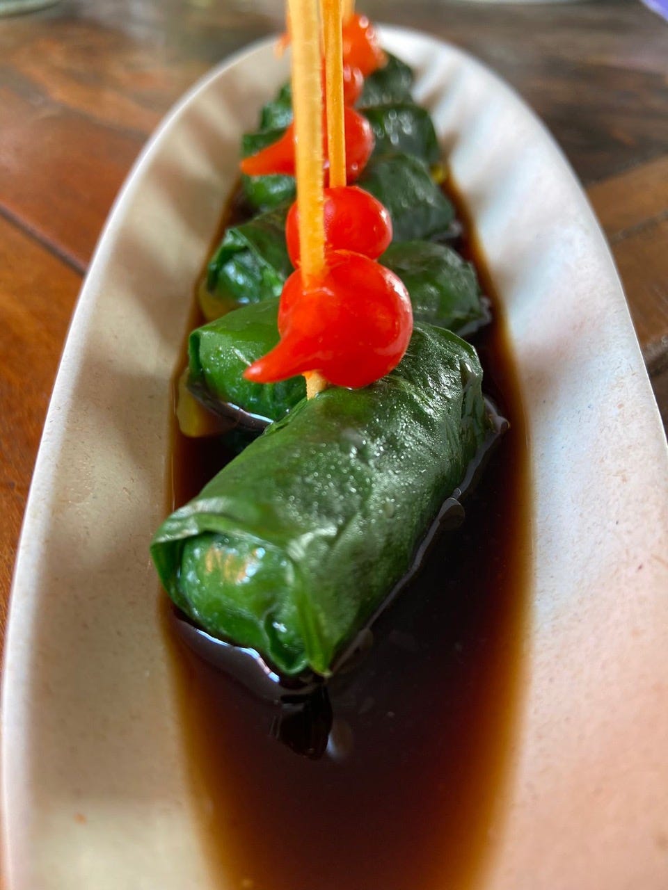 O vinagrete, um dos molhos mais populares do Brasil, também ganha novas leituras. Presente em churrascos, mesas familiares e cozinhas do dia a dia, ele aparece na A Casa da Agnes nos charutinhos de taioba e galinha caipira. Aqui, a chef imprime seu toque autoral ao incorporar a cachaça ao preparo, acrescentando profundidade e identidade brasileira ao molho que acompanha o prato.