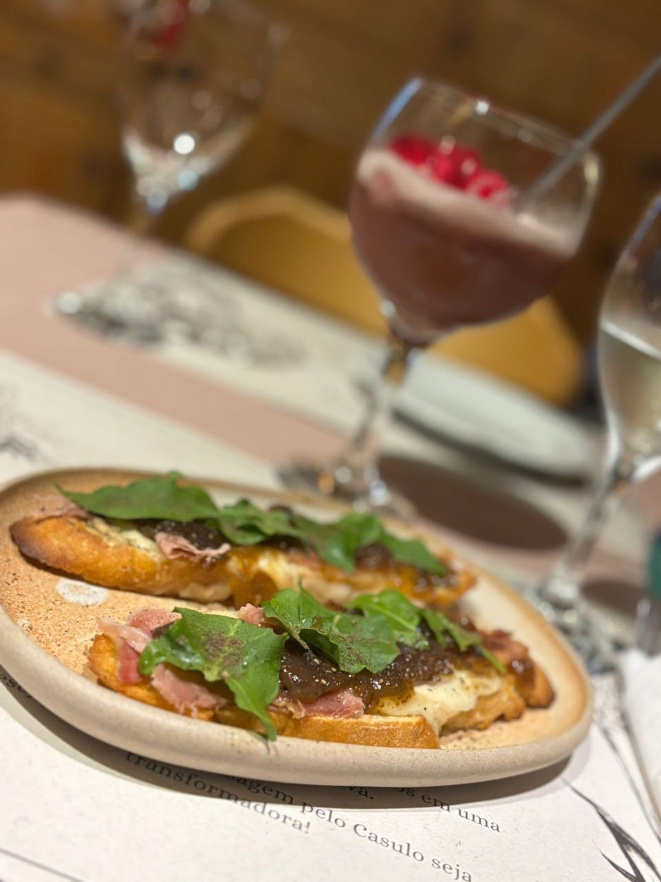 A lógica da preservação aparece nas geleias do Casulo. Na bruschetta com queijo maturado do Cerrado e presunto cru caipira maturado, a geleia de figo com baunilha do Cerrado não é apenas acompanhamento. Ela conecta sal e doce, gordura e frescor, trazendo profundidade e um gesto de cuidado que remete às técnicas ancestrais de conservação, quando açúcar e tempo eram ferramentas fundamentais da cozinha.