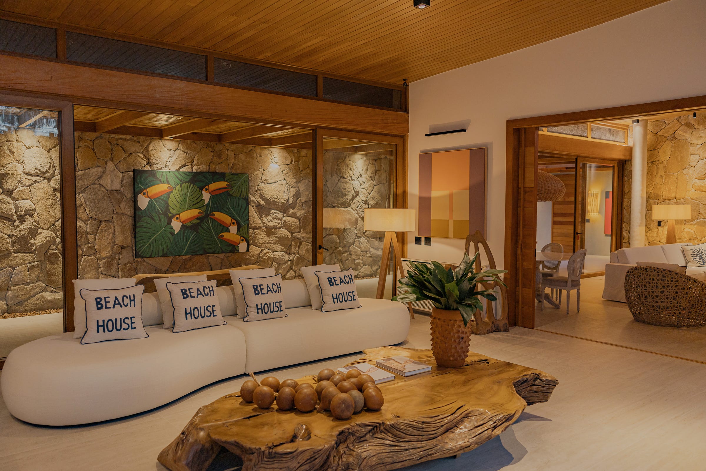 Localizada no requintado condomínio Villa Vista Golf, em Trancoso, a Casa 42 é uma obra-prima do renomado arquiteto David Bastos, com decoração e quadros assinados pela talentosa Valéria Calonge, além de paisagismo primoroso de Luiz Carlos Orsini. Com 920 m² de área construída em um terreno de esquina de 1.667 m², esta encantadora residência oferece uma combinação ideal de sofisticação e funcionalidade.