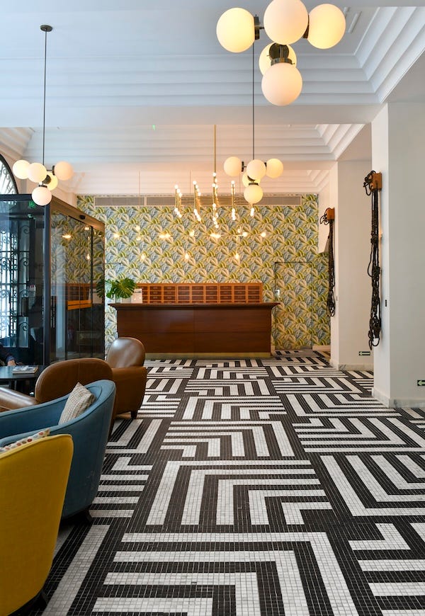 Os pavimentos e 81 quartos do hotel dispõem de designs distintos, com composições de móveis e cores diferenciados, criando assim, cada ambiente com espaço diferenciado. Os pisos originais de taco de madeira e mármore foram recuperados e os elementos como louças, metais e luminárias tem todo o charme e inspiração do estilo da época.