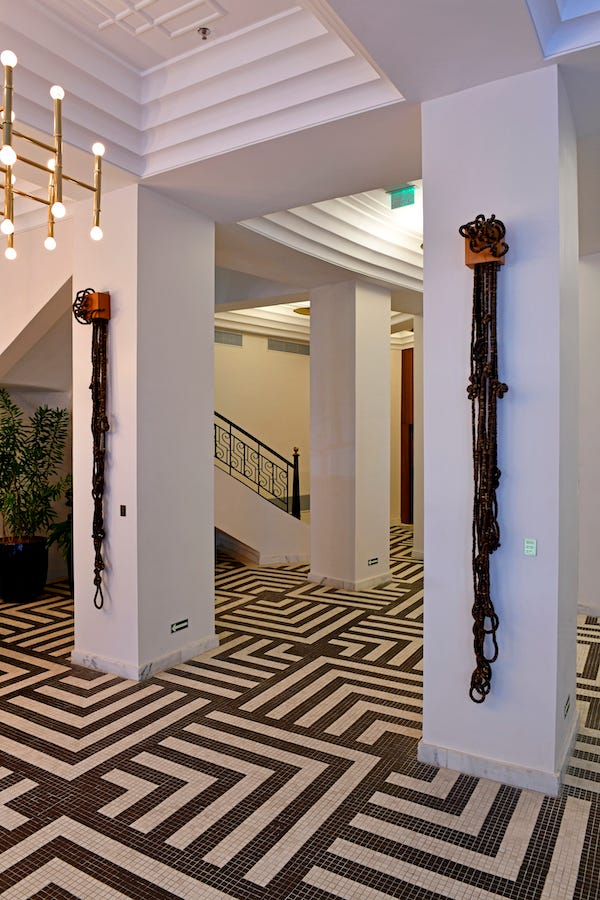 O interior do hotel combina o Art Déco com aspectos baianos. Logo na recepção, o hóspede se depara com o piso em mosaico preto e branco, imponentes lustres Art Déco, e impressionantes esculturas da artista plástica baiana Nádia Taquary. Suas peças lindamente elaboradas, feitas com uma mistura de madeira, búzios, palhas, miçangas, pastilhas de coco, ouro, prata, conta e figas, exaltam a religiosidade afro-baiana, parte essencial da identidade de Salvador.