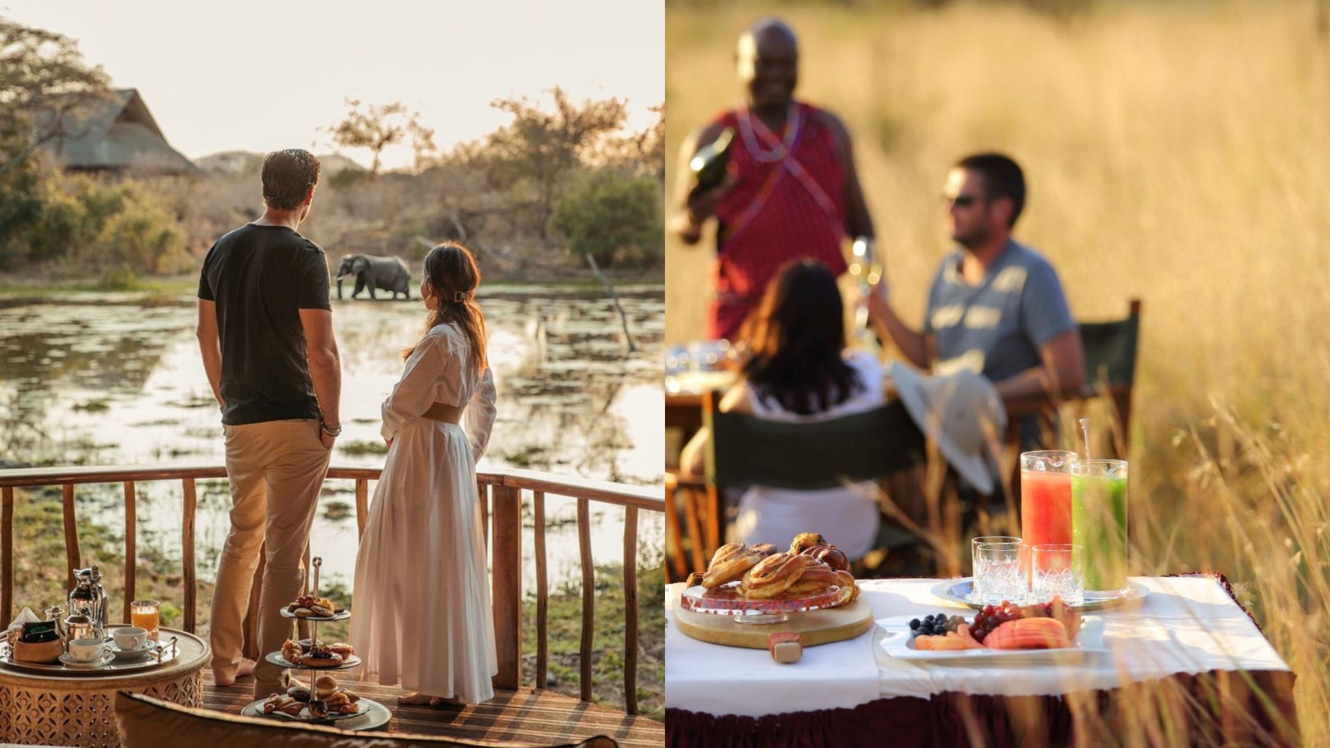 Ao nascer e ao pôr do sol, os casais exploram a savana em passeios guiados para observar os animais selvagens, avistando majestosas paisagens dominadas pelas colinas de Chyulu e pela silhueta do Monte Kilimanjaro no horizonte. À noite, o luxo continua: jantares à luz de velas na piscina infinita ou no terraço da suíte, sob um céu africano estrelado. Esta experiência exclusiva permite que os aventureiros vivenciem a magia da África com total conforto.