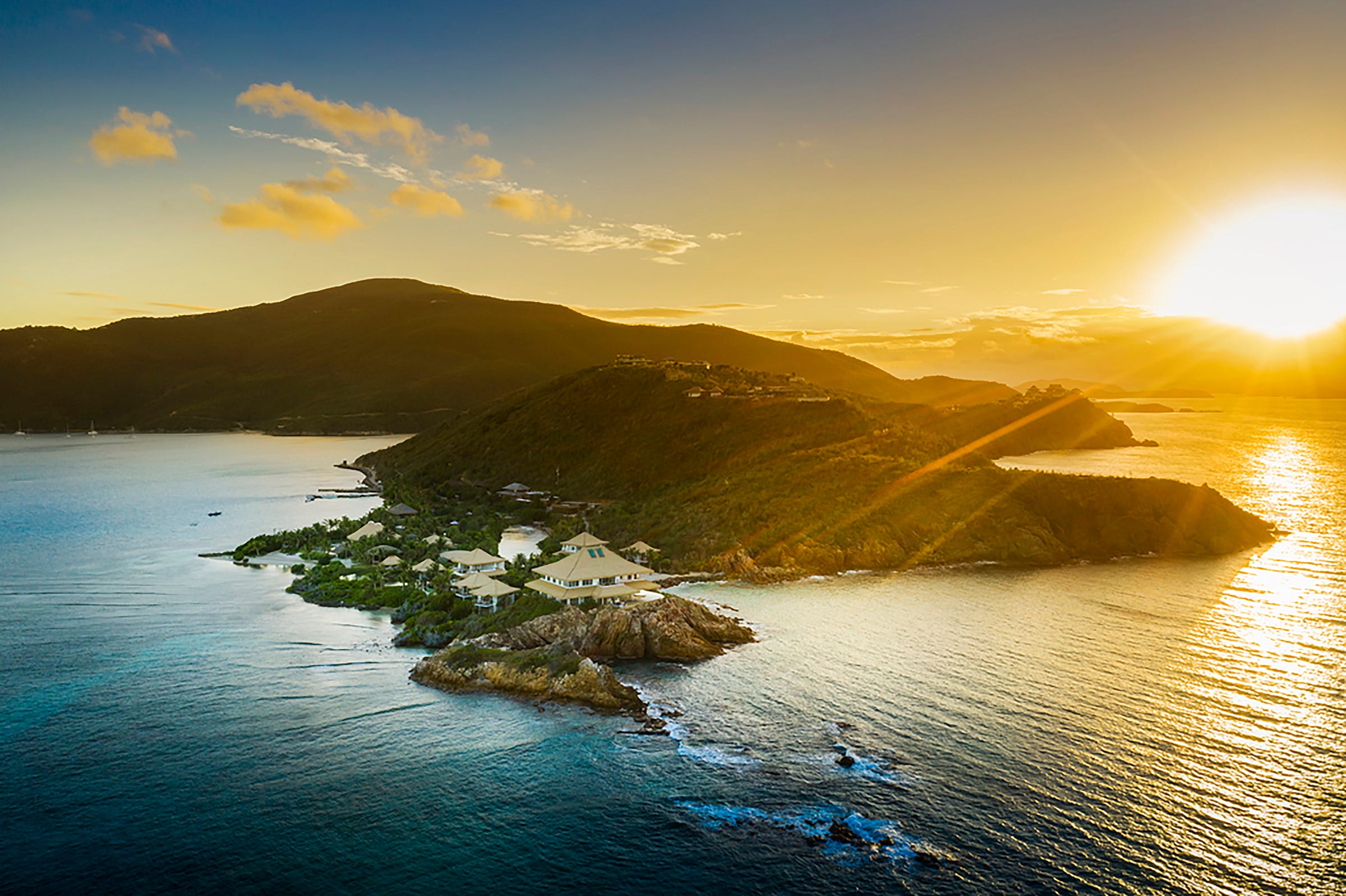 Na remota e exclusiva Ilha Moskito, nas Ilhas Virgens Britânicas, The Branson Beach Estate possui três vilas privativas, cercadas por águas calmas e praias de areia branca, um cenário ideal para noites tranquilas sob a luz das estrelas.