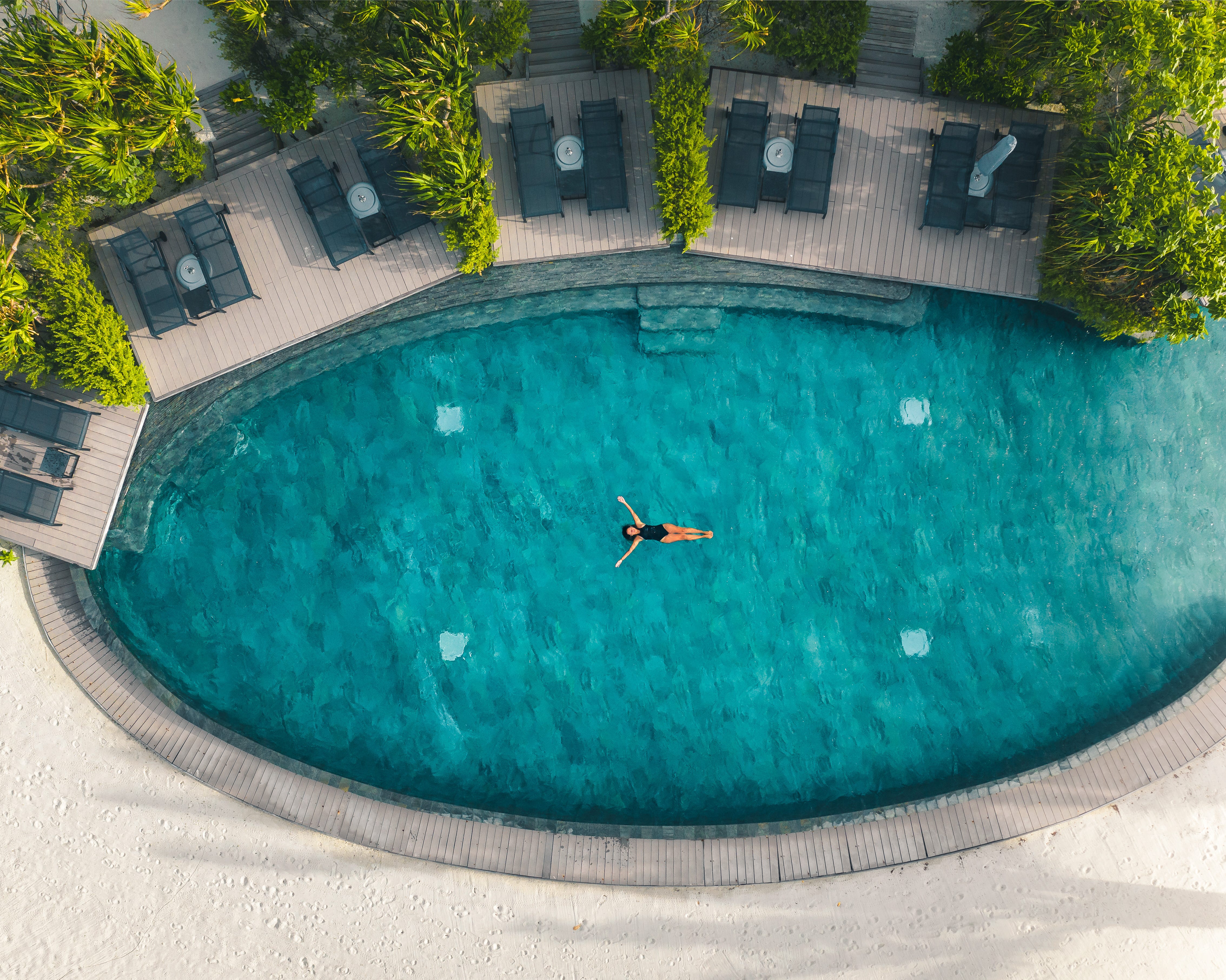 O resort conta com 36 espaços privativos, e cada um deles isolado dos demais, oferecendo ainda diferentes ambientes para relaxar, ler, ou apenas contemplar a natureza paradisíaca. Em 96 m² hóspedes podem desfrutar de uma suíte com camas king size e dois confortáveis sofás-camas, além de banheira privativa outdoor e sala de estar, com minibar, geladeira, uma enorme TV e office. As estruturas seguem projetos modernos para evitar desperdício de recursos e primar pelo isolamento acústico e ventilação nos espaços.