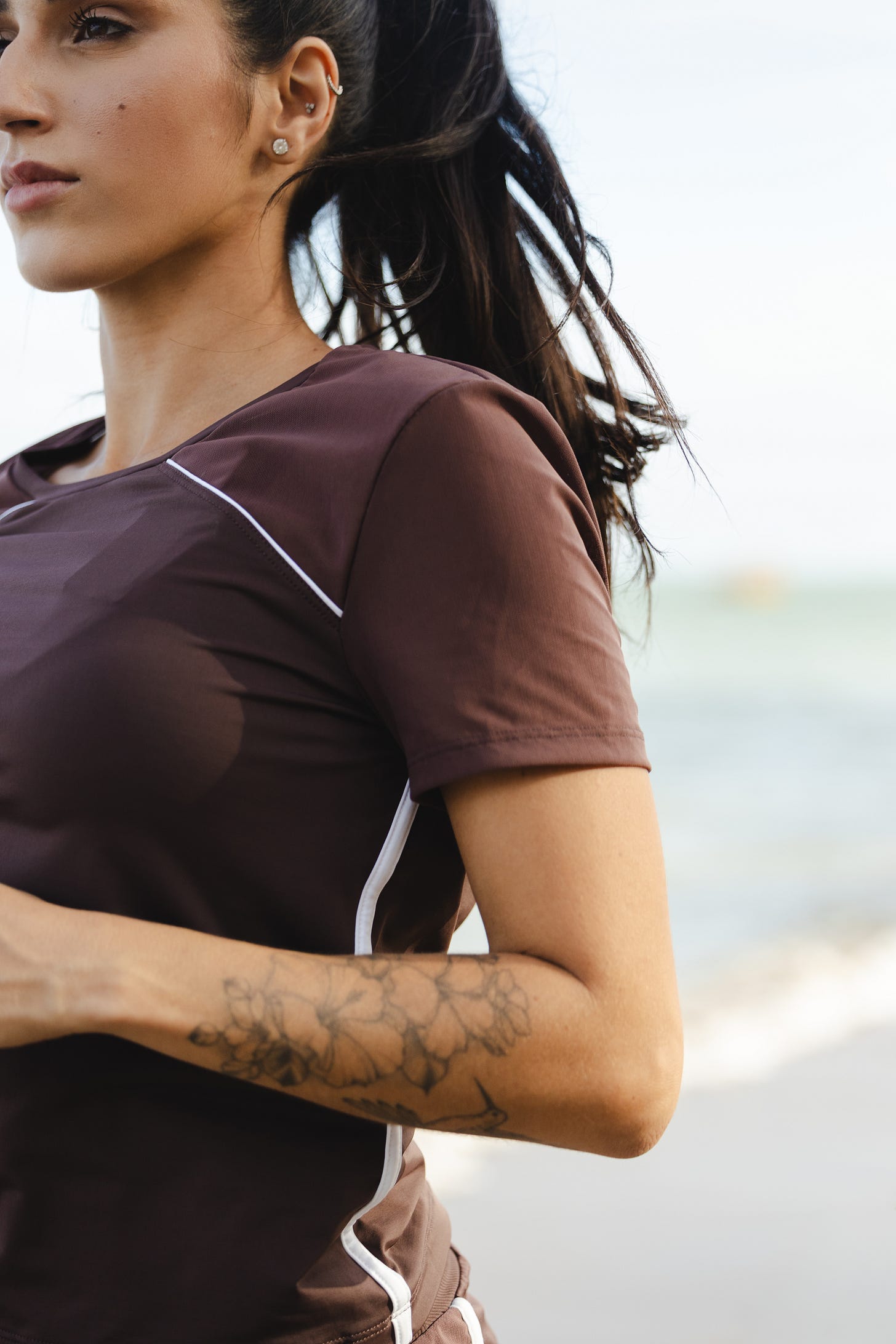 Com foco na modalidade Running, a novidade destaca o tom castanho, best seller da marca, agora apresentado em novas modelagens e opções de peças. A camiseta feminina surge com shape reto, mangas e recortes nos ombros em tela, além de detalhes em branco que iluminam o visual. A saia evasê e a calça legging acompanham a mesma cartela e trazem recortes laterais em tela, cós canelado, bolsos funcionais e cordão para ajuste, garantindo conforto, segurança e praticidade durante o uso.